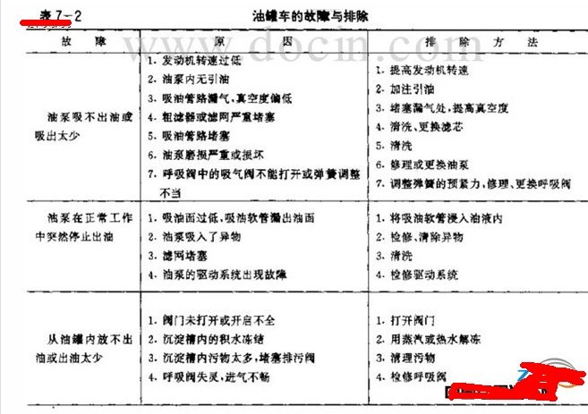 三、油罐車(chē)的故障與排除見(jiàn)圖