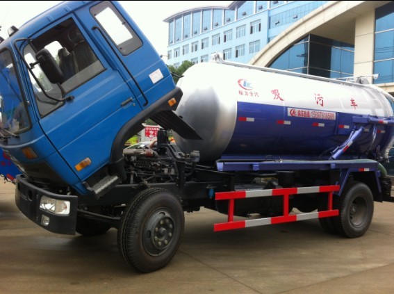 東風145吸污車,吸污車專用 部分由取力器、傳動軸、真空吸污泵、壓力罐體、液壓部分,管網系統、真空壓力表、視糞窗、洗手裝置等組成,隨車配置大功率真空吸污泵和優質液壓系統,罐體封頭一次壓鑄成型、罐體可后開、雙頂自卸。罐內污物可通過后蓋直接傾倒,具有真空度高(比吸糞車的吸力更大)、噸位大、效率高、用途更廣泛的特點性能作用。